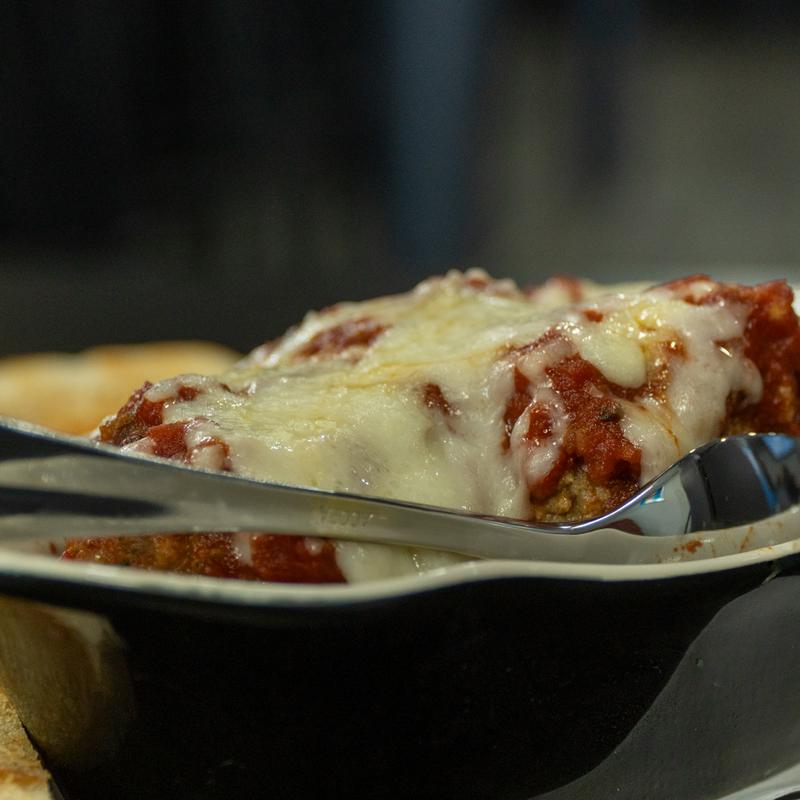 House made meatballs and marinara with melted mozzarella cheese on a hoagie bun